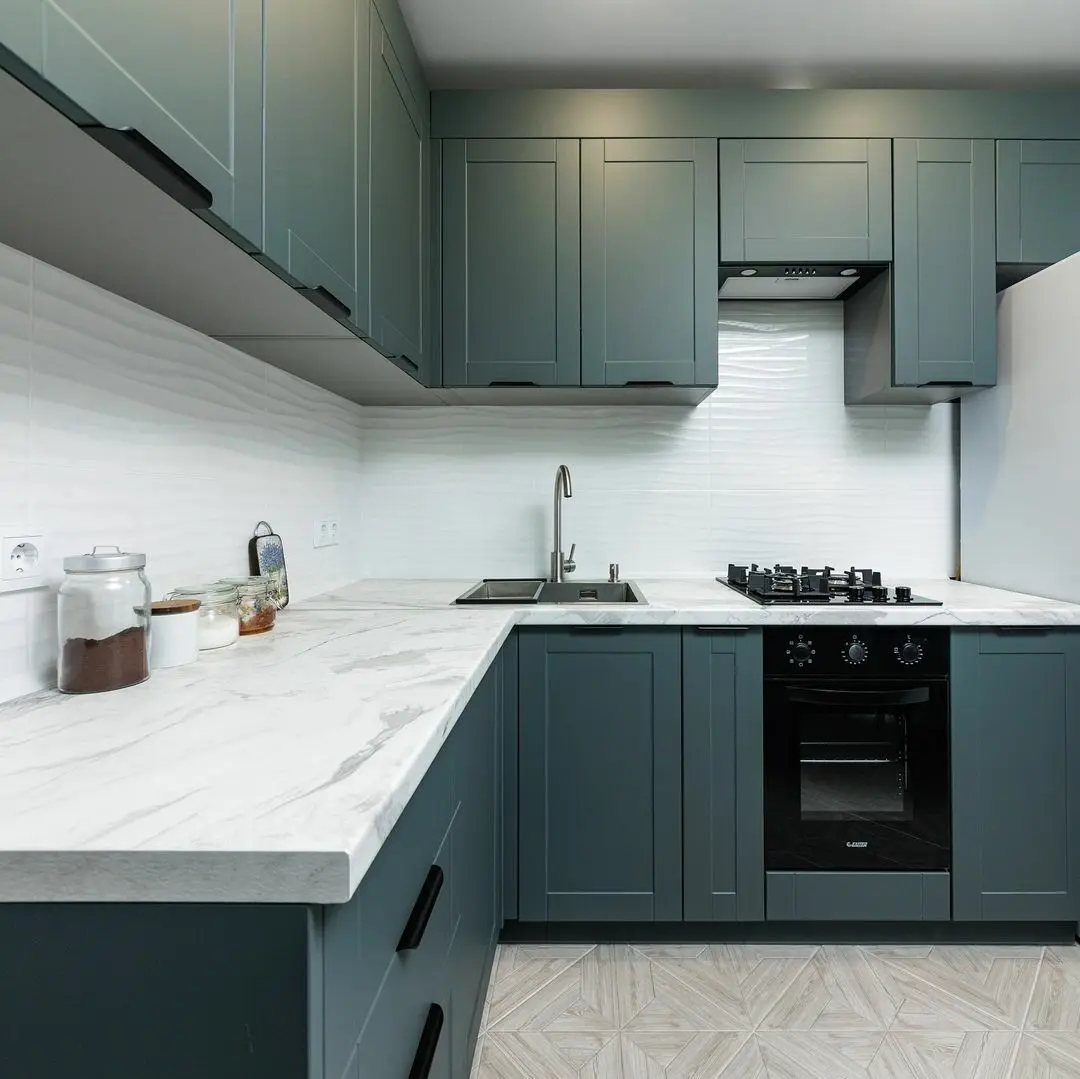 Кухня Лукка сочетает изысканность натуральных фактур и современный комфорт. Фасады из шпона МДФ в глубоких серых тонах создают уютную атмосферу, а мраморная столешница придаёт кухне лёгкость и благородство. Каждая деталь продумана до мелочей, а фурнитура Boyard обеспечивает безупречную эргономику и плавность работы.