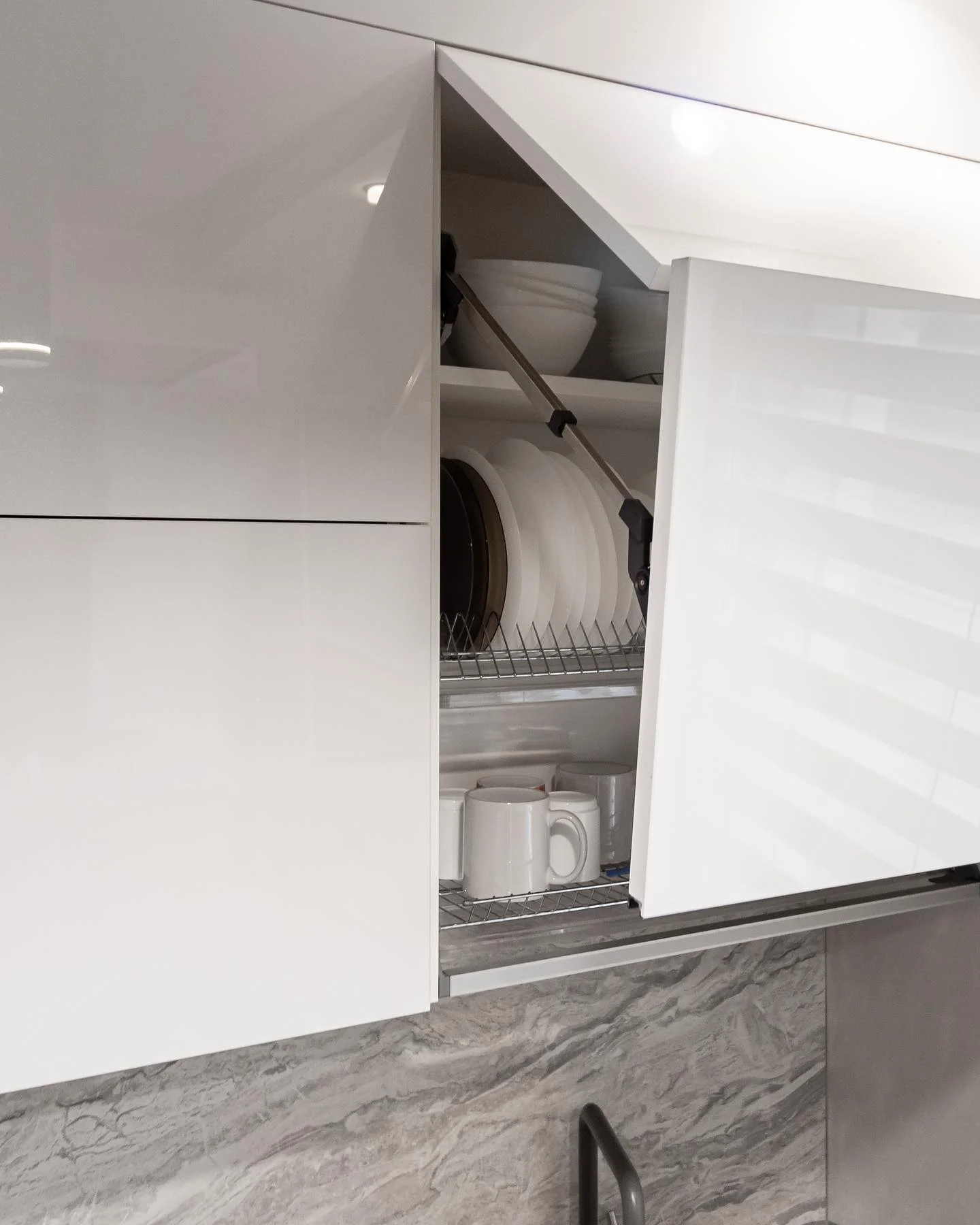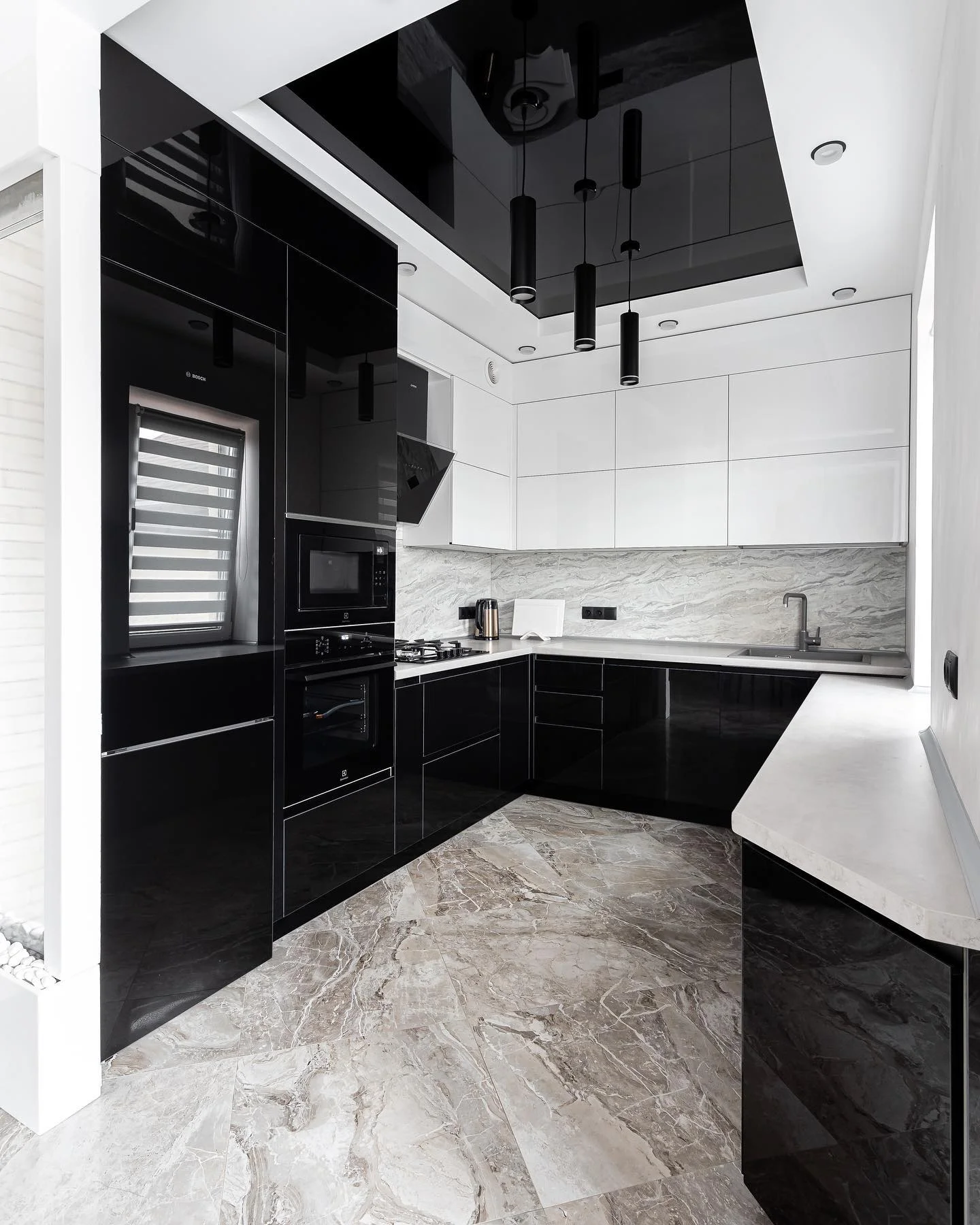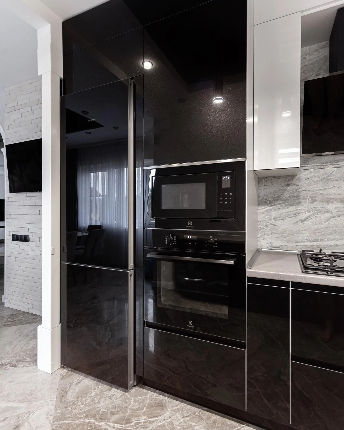 Кухня Астера — сочетание выразительного контраста и чистоты линий. Глянцевые фасады в чёрно-белом цвете подчёркивают геометрию пространства, а каменный фартук и светлая столешница придают интерьеру изысканность. Эргономичная планировка и надёжная фурнитура Hettich делают кухню максимально удобной и современной.