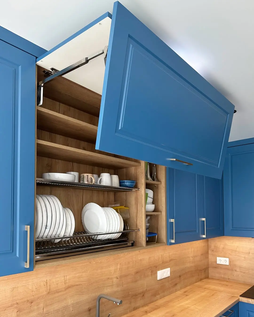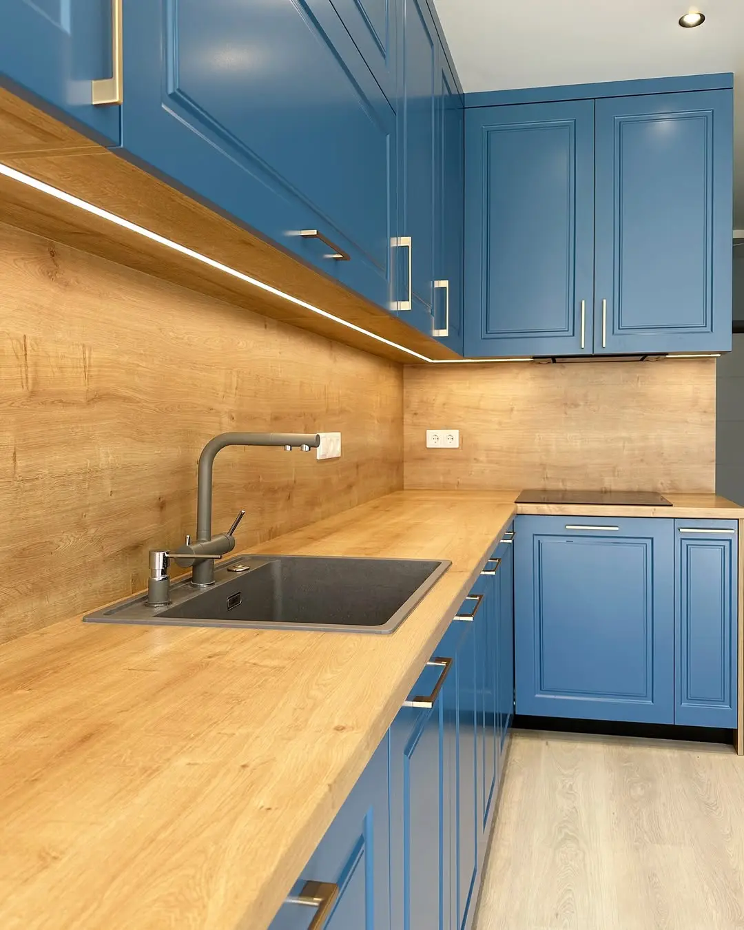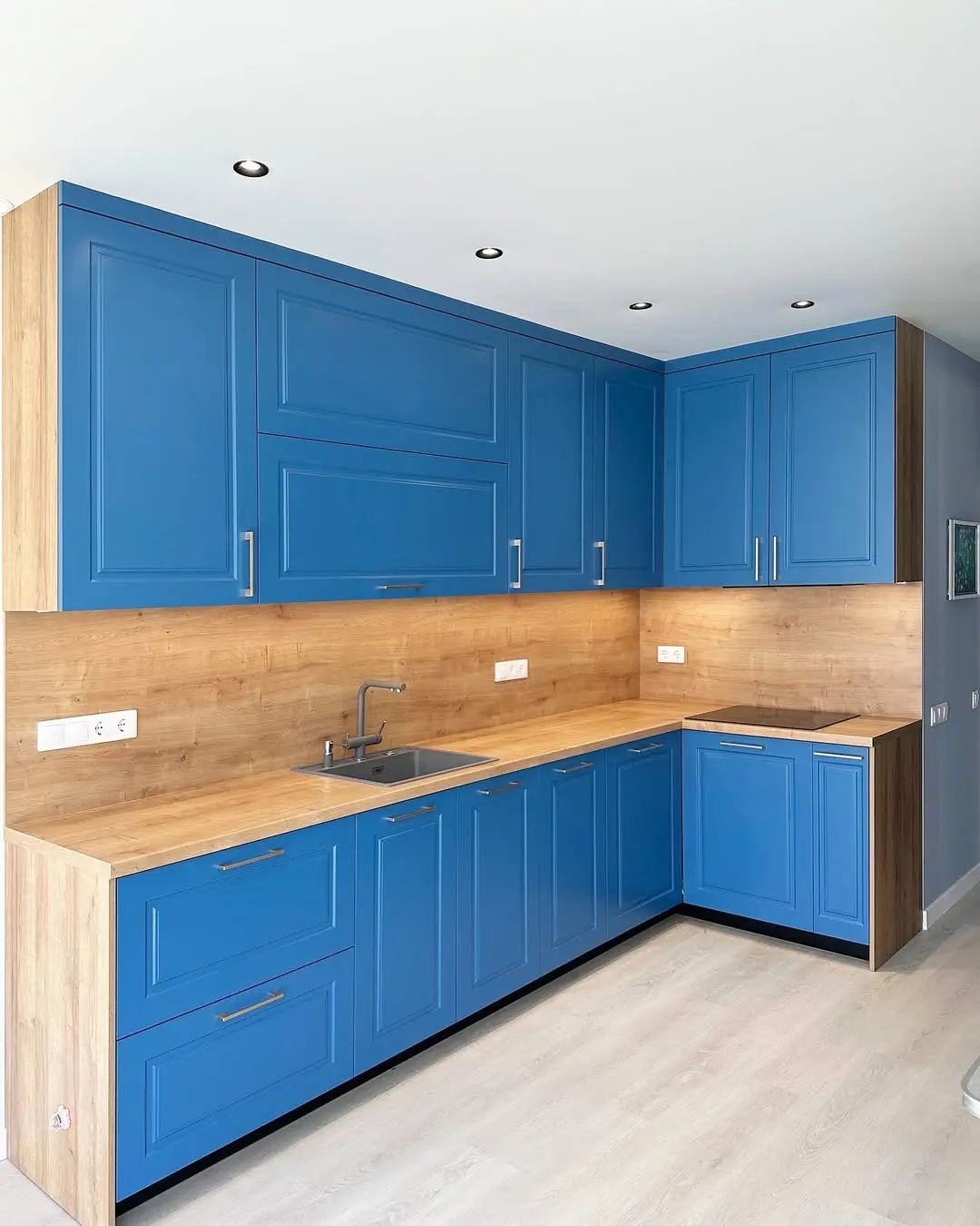 Кухня «Индиго» — воплощение современного комфорта и классической элегантности. Глубокие синие фасады с изящной фрезеровкой прекрасно сочетаются с теплым оттенком дерева. Просторная рабочая зона, продуманное хранение и качественная фурнитура создают уют и практичность. Кухня идеально подходит для светлых интерьеров с акцентом на выразительный цвет.