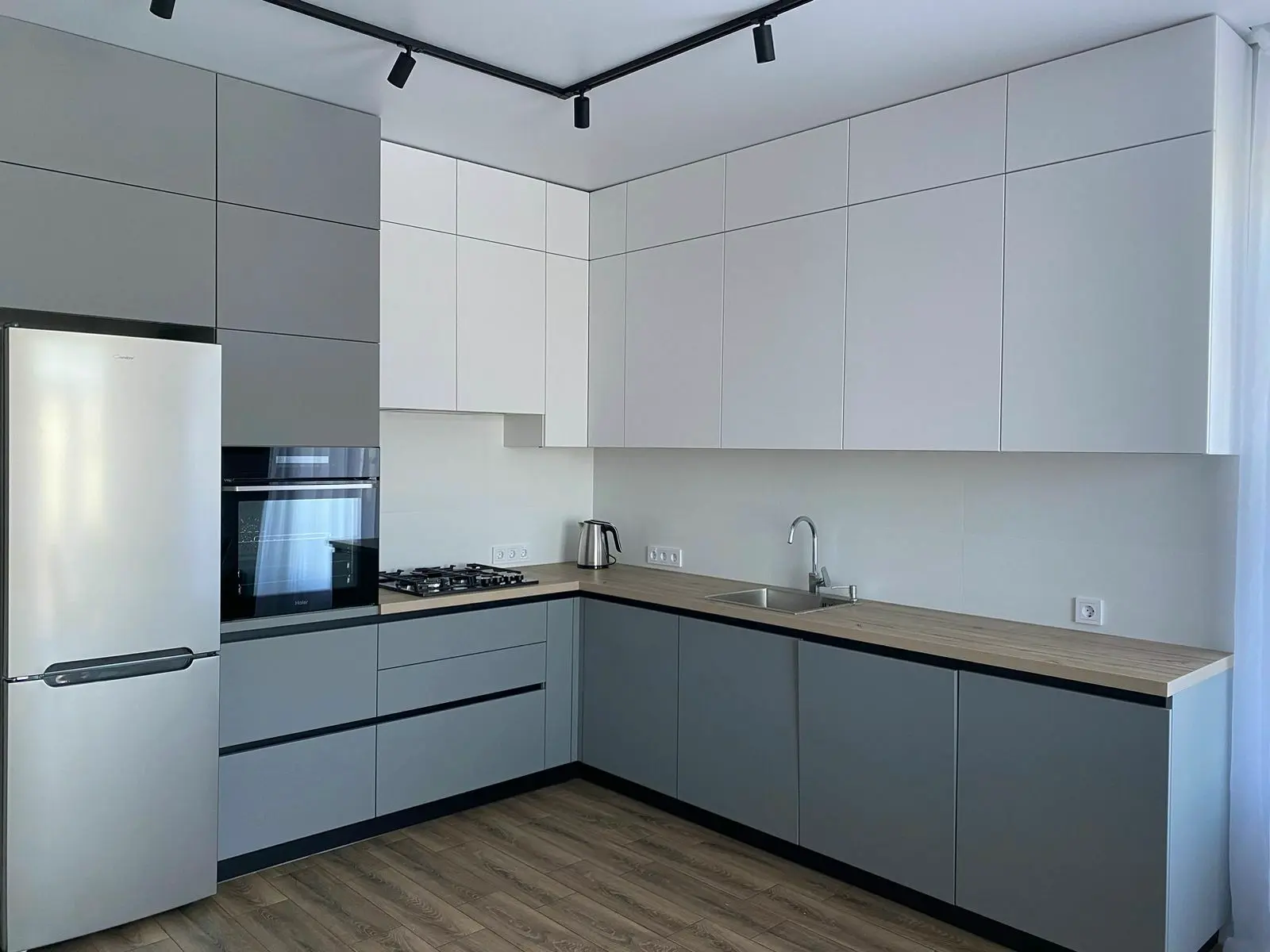 Отзыв о кухне на заказ в современном стиле с серыми фасадами