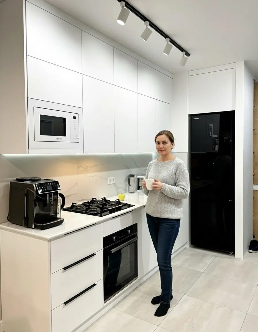 Угловые кухни позволяют разместить холодильник, мойку и плиту по принципу золотого треугольника, в соответствии которому между необходимыми точками минимальные расстояния